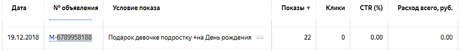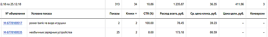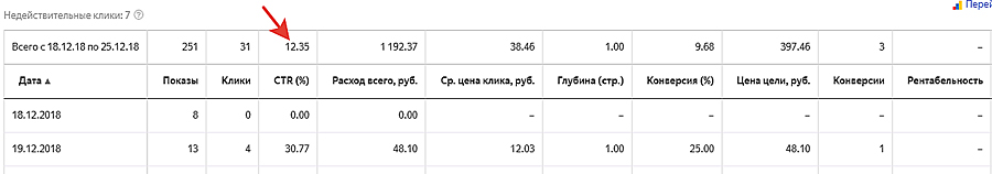 Если же частотность ключа с низким CTR ниже 500–600, то проверяем, на каком месте показывалось объявление по этому запросу.
