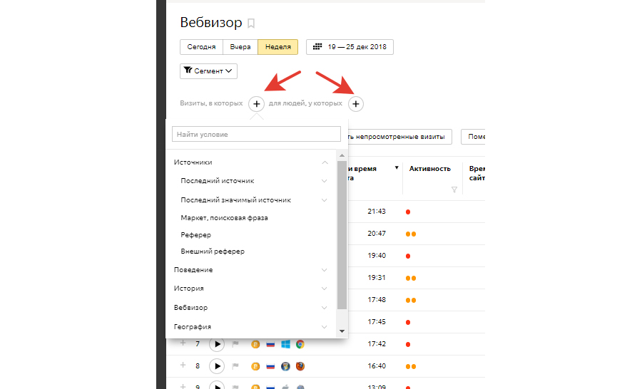 Вебвизор — кладезь ценной информации. Просматривая записи посещений, можно понять, что посетители делают на сайте, на каких разделах задерживаются, какие пропускают, а с каких разделов сайта «сливаются».