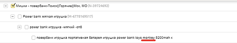 На скрине видно, что слово monkey в запросе нецелевое, так как реклама настроена на power bank в виде мишек.