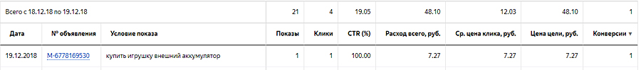 А на следующем скрине есть номер объявления, которое привело к конверсии.