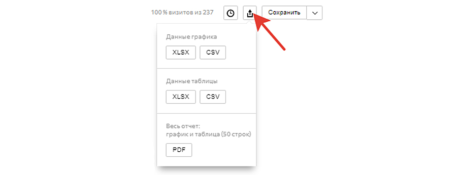 Примечание: все отчеты — «Директ», «Метрика», «Google Реклама», «Аналитикс» — можно скачать в формате excel и проводить в них анализ статистики, используя фильтры.
