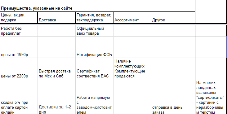 Затем выписать характеристики своего продукта и указать, какие именно из них являются преимуществами: