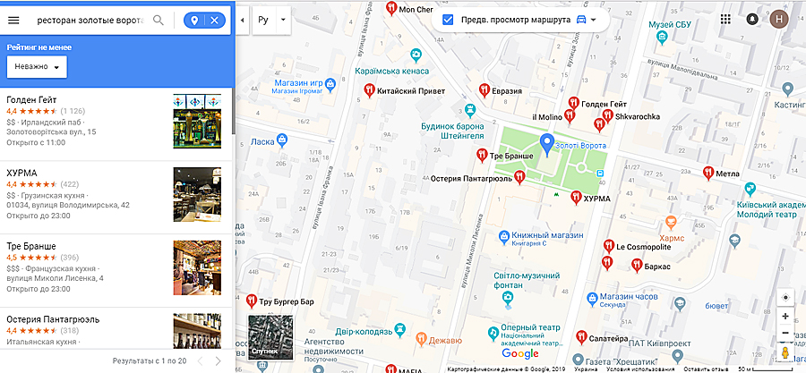 Например, при запросе «Ресторан на Золотых воротах» я увижу вот такую картинку.