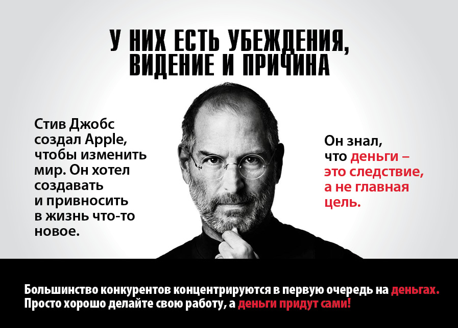 Большинство конкурентов концентрируются в первую очередь на деньгах.