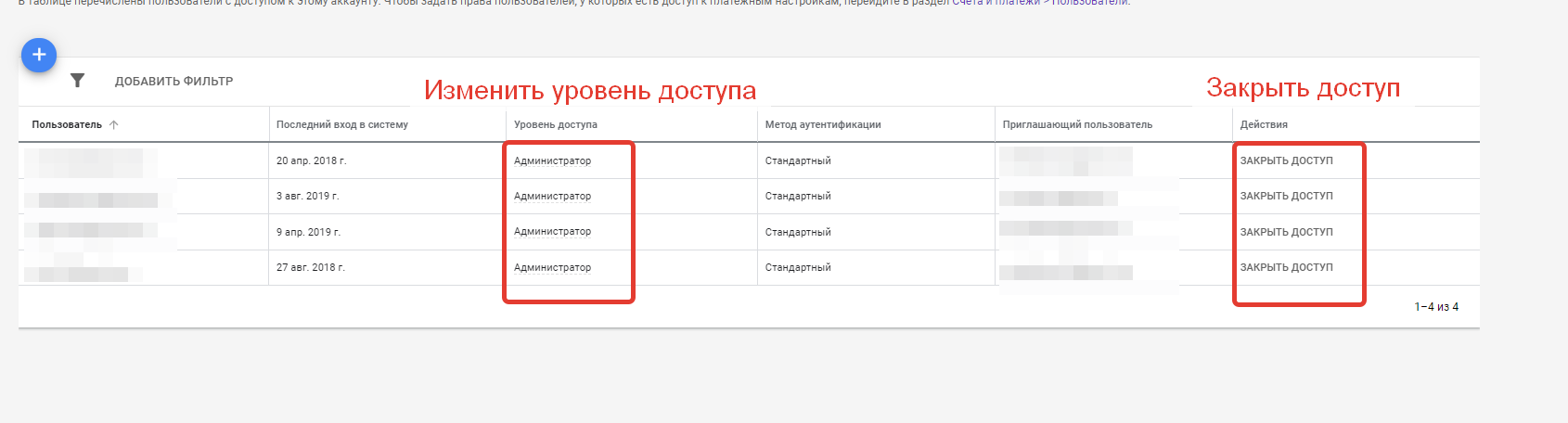 Чтобы открыть доступ к выбранному вами уровню данных, нужно перейти по ссылке «Управление пользователями» в соответствующем столбце.