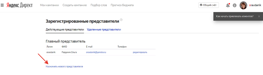 Закончив работу с сотрудником рекламного агентства или фрилансером, обязательно удалите его логин из представителей. Помните: если человек имеет доступ к показателям вашего бизнеса, он может в любой момент внести любые изменения в работающие кампании или продать информацию конкурентам.