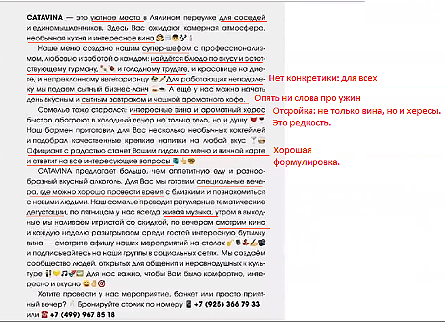 Время представить героя разбора — ресторан CATAVINA. Я побывала в этом ресторане. Убеждена, что обязательная часть работы с УТП — попробовать сам продукт.