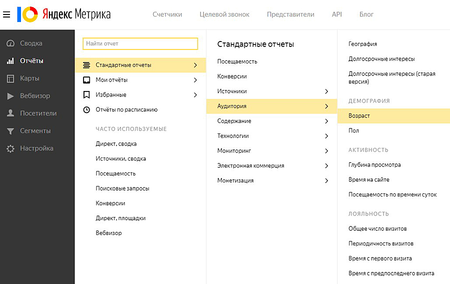 Используем сервис «Яндекс.Метрика» для получения базовой информации о посетителях вашего сайта.