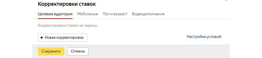 Осуществлять корректировку ставок вы можете на уровне кампании или отдельных групп объявлений. Корректировка возможна по: