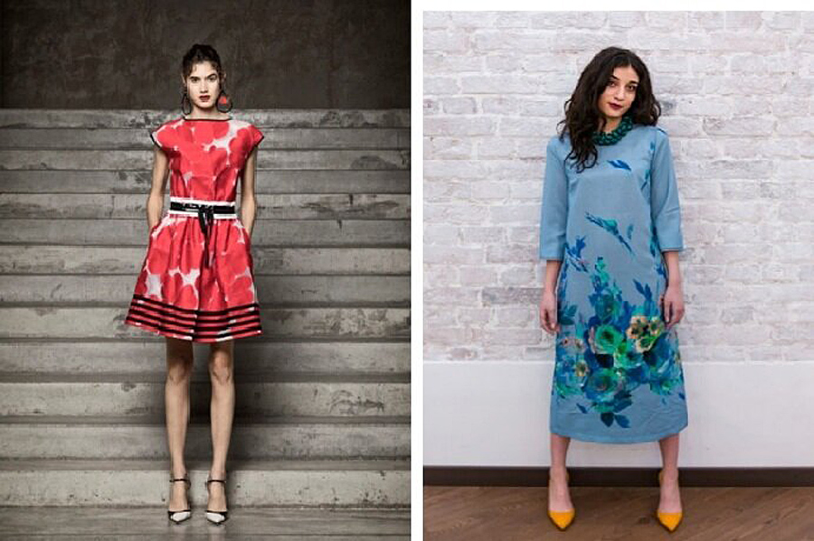 Вот наши платья. Вот наш Абдулла (справа), а вот маэстро Армани (слева). У обоих одинаковые условия — гаражный кооператив с облезлыми стенками, модель-брюнетка и авторское платье с каким-то интересным принтом.