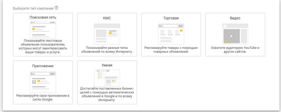 Видеокампании — для размещения видеорекламы на YouTube и в КМС, а приложения можно рекламировать отдельной рекламной кампанией.