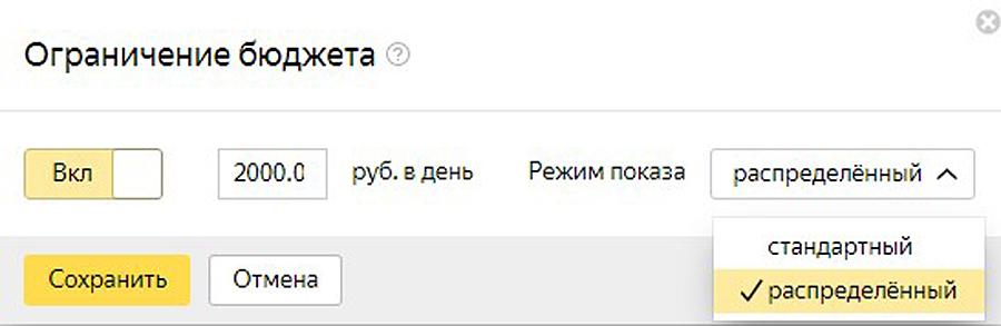 В Google Ads есть «равномерный» режим показа объявлений, а в «Яндекс.Директе» — «распределенный».