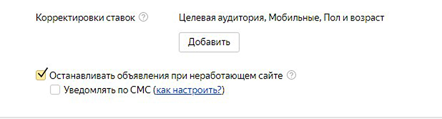 В параметрах рекламной кампании имеется настройка, останавливающая показ кампании при технических проблемах на сайте. Это позволяет не допускать лишних расходов во время работы рекламной кампании.