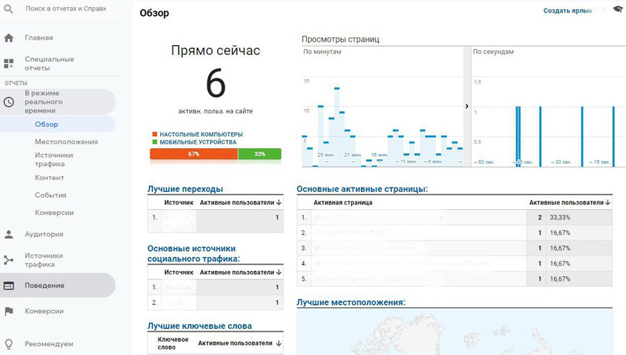 В свою очередь, GA позволяет увидеть количество посетителей на сайте в режиме реального времени.