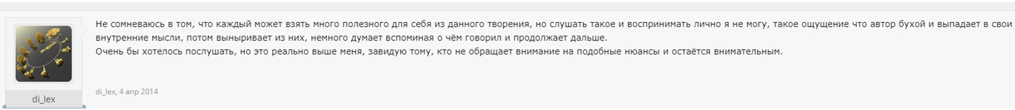 Общий вывод независимых слушателей: невозможно воспринимать информацию, очень медленно, сложно для восприятия, много воды.