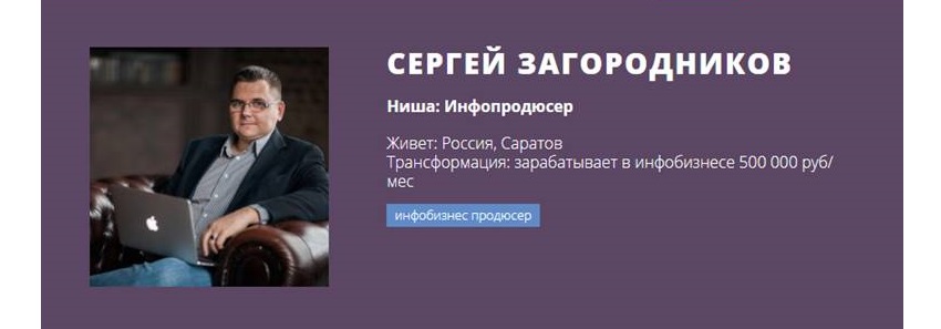 Простой пример: Сергей Загородников, некогда тот самый университетский преподаватель с копеечной зарплатой. Все еще лицо с обложки сайта Антона Ельницкого. Якобы всему научился на курсах интернет-университета.