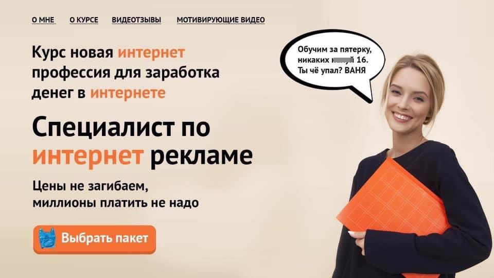 Начинается все с того, что молодой человек озвучивает свое желание продавать курс по новой интернет-профессии для заработка денег в интернете. И снова говорит о новой интернет-профессии — специалист по интернет-рекламе.