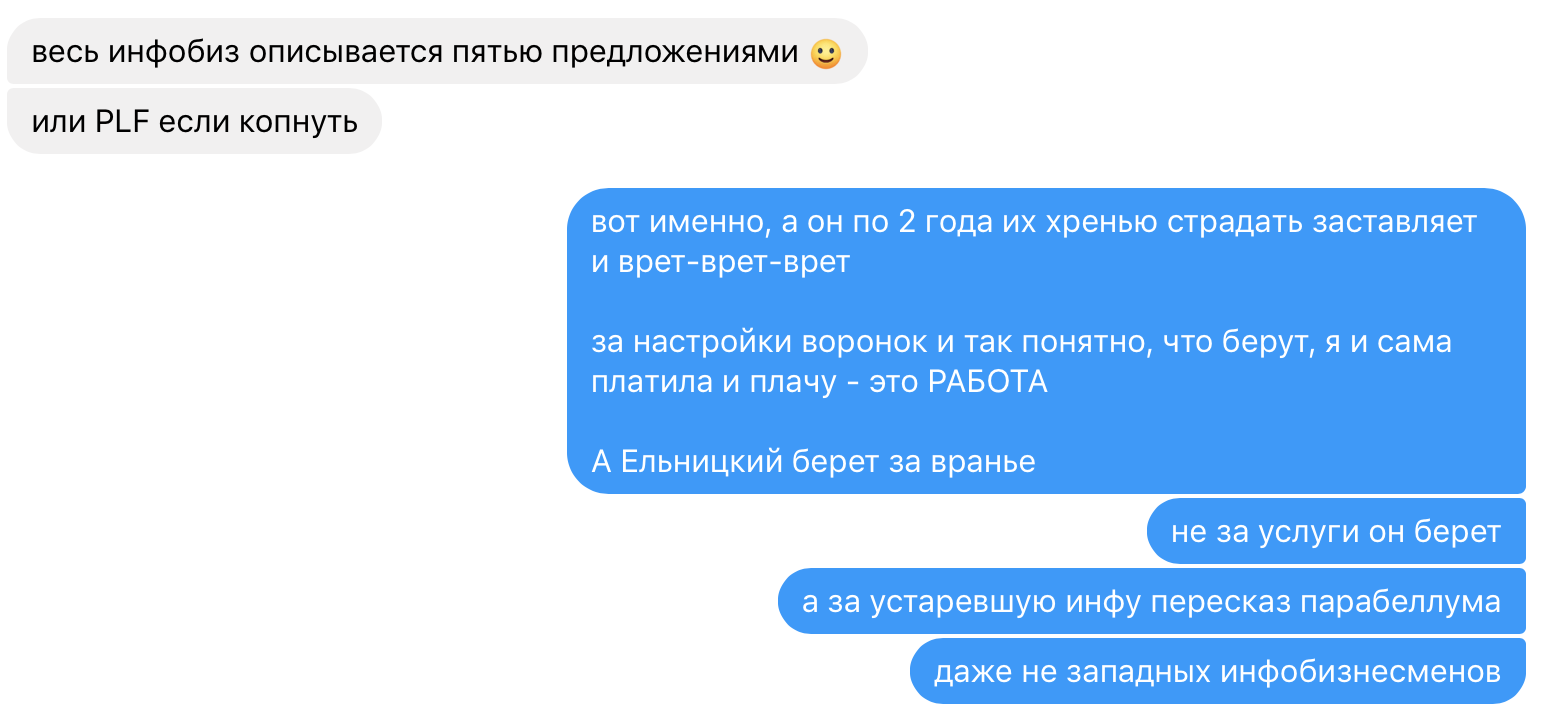 Вот еще удивительная выписка из увещеваний Ельницкого для потенциальных инфобизнесменов: