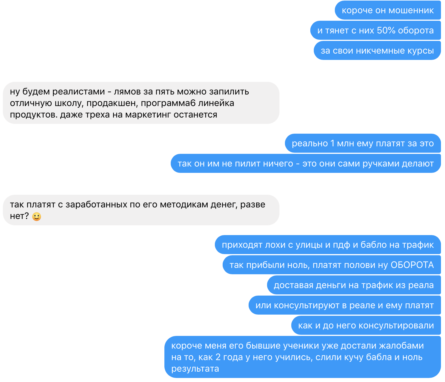 Андрей посыпает голову пеплом и клянет тот день, когда «доверился мошеннику». А ведь, заметим, этот самый мошенник был когда-то его лучшим учеником, горячо любимым и активно продвигаемым воспитанником. Примером для всех пионеров инфобизнеса.