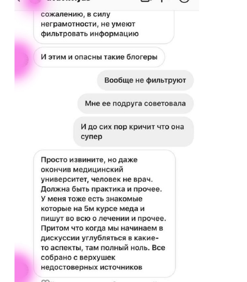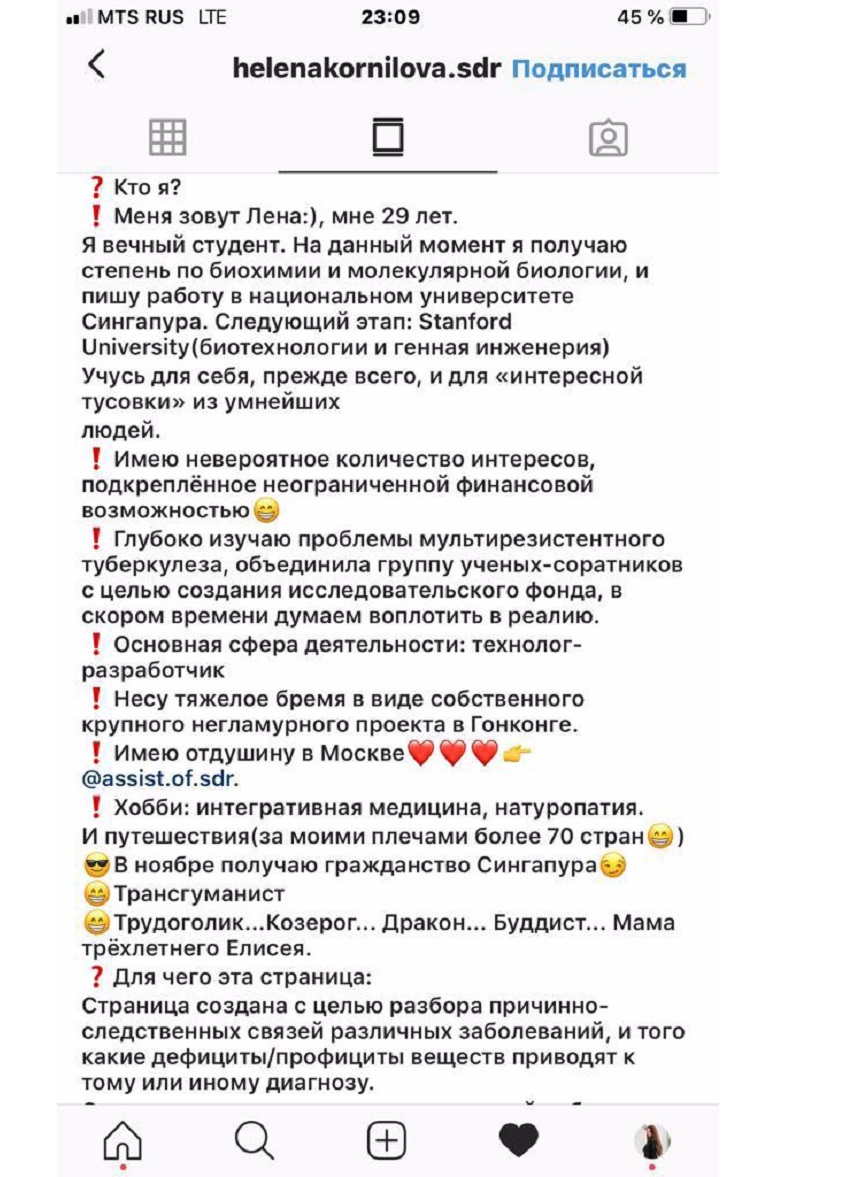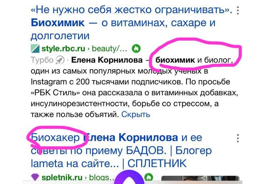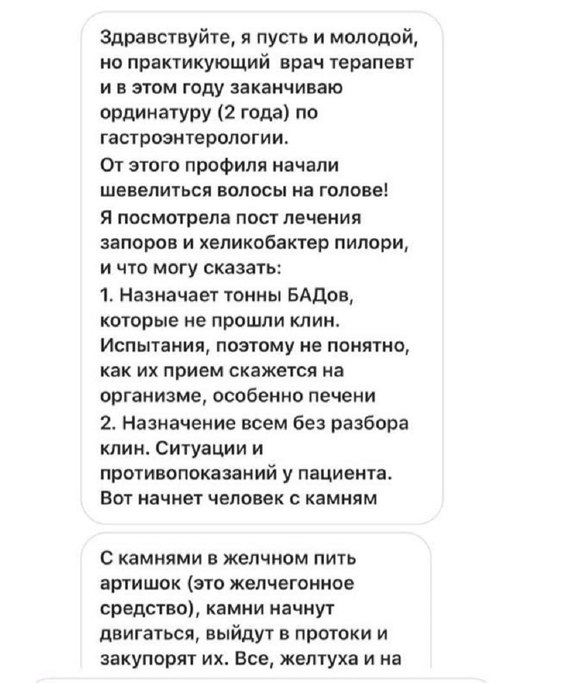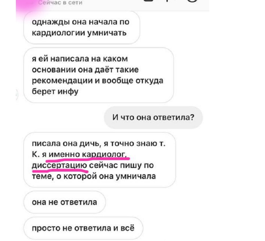 Елена Корнилова говорит о том, что ее врачи рекомендуют и участвуют в ее вебинарах, квалификация этих врачей под сомнением. Вот, например, переписка с https://instagram.com/cardiodoc. Подруга и коллега Корниловой, они друг друга рекламируют.