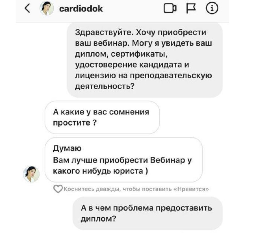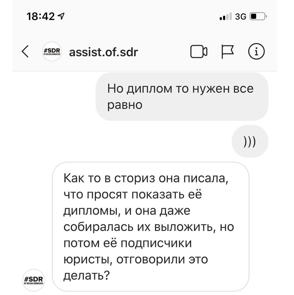 Но вот незадача! Моих подписчиков, которые у нее запрашивают диплом, ее помощница блокирует.