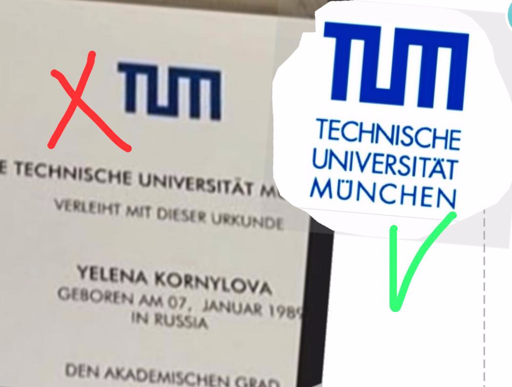 2. На дипломе написано Universitaet. Должно быть Universität.
