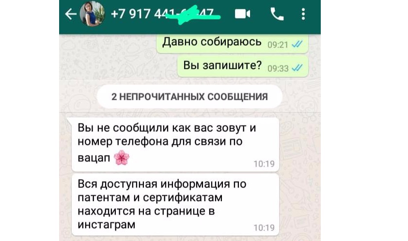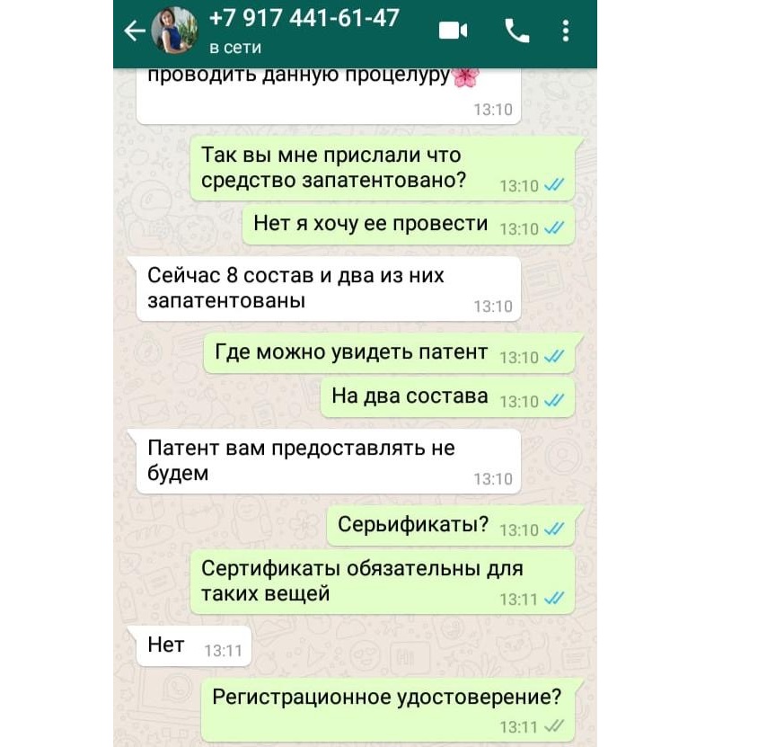 На странице «Инстаграма», естественно, ничего не оказалось. И мы вернулись с вопросом про патент и сертификацию.