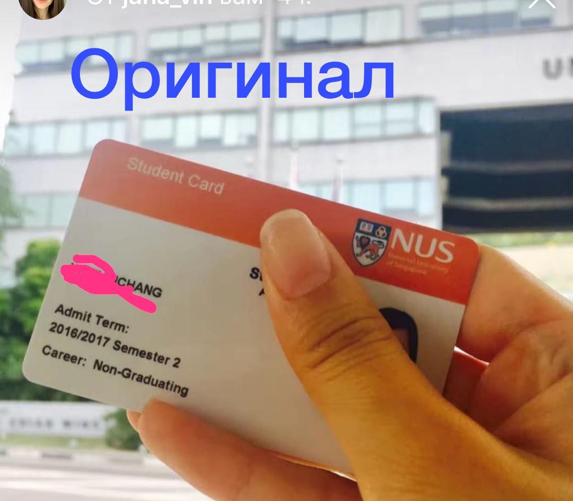 ⁉ И как на карточке сингапурского универа у нее фамилия написана? Не через Y, как на документе слева — i. Карточка — это документ, буквы должны быть как в паспорте, ошибка недопустима.