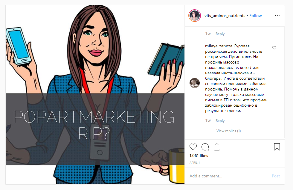 Пока готовился этот материал, в Сети появилось еще одно удивительное сообщение: аккаунт popartmarketing сдулся и перестал существовать.