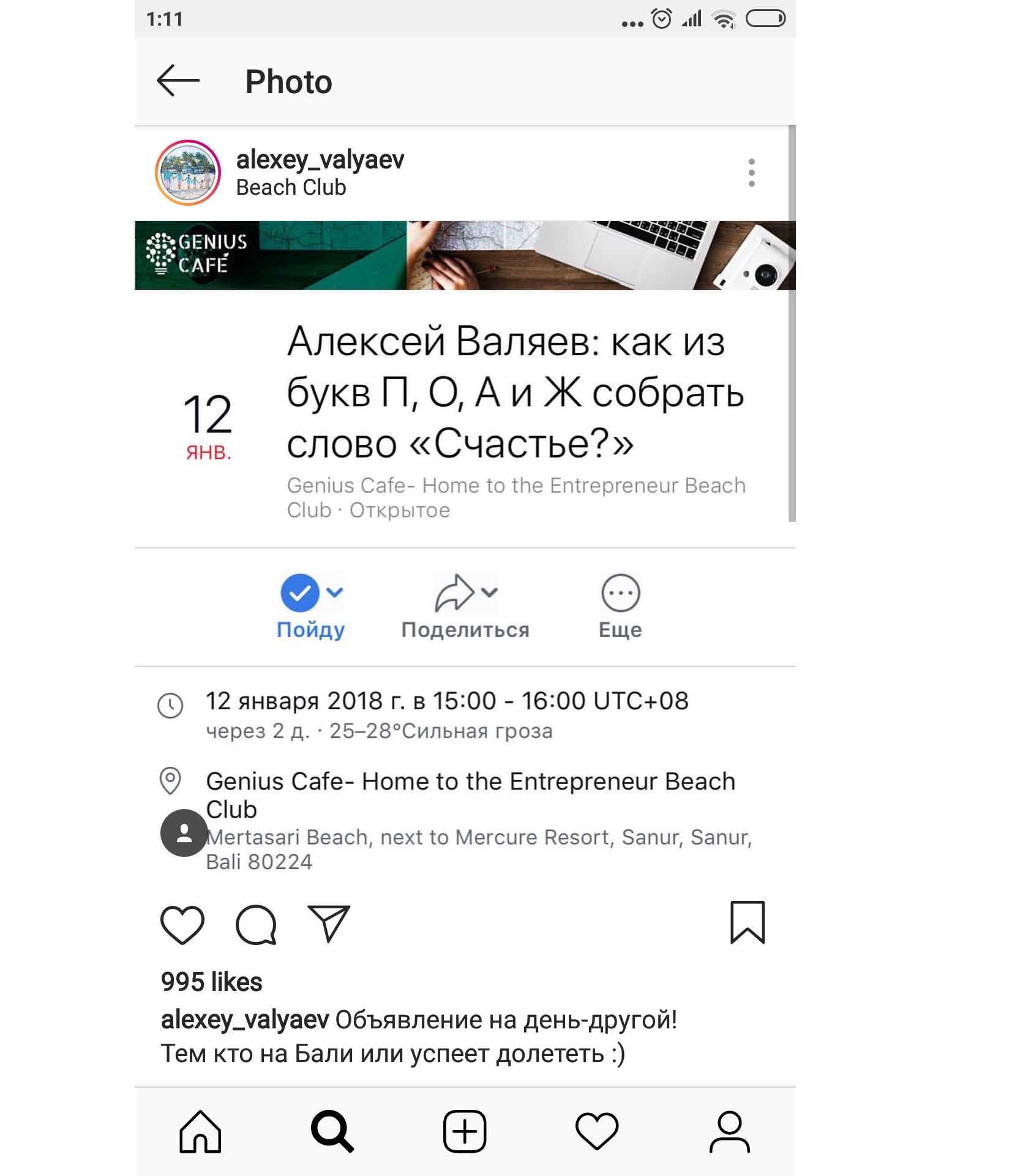 Было, правда, около года назад, Алексей решил тряхнуть стариной, как Парабеллум завещал, и провести тренинг. Так как экспертности в какой-либо области Алексею, видимо, не хватало, он решил просто следовать запросу аудитории. Для женщин в... хм… трудной жизненной ситуации, стремящихся к счастью, — самое оно:
