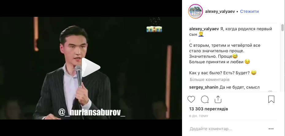 Диагноз аутизма у первенца и скорое появление второго ребенка выбора, в общем-то, Ольге не оставили. Кому-то надо было заниматься детьми, а муж явно не горел таким желанием. В «Инстаграме» Алексея красуется видео комика Нурлана Сабурова, где тот эмоционально делится впечатлениями от отцовства: «Пошел в жопу, сына, пошел в жопу!» Валяев видит в таком отношении к детям стопроцентную корреляцию с собственными чувствами: