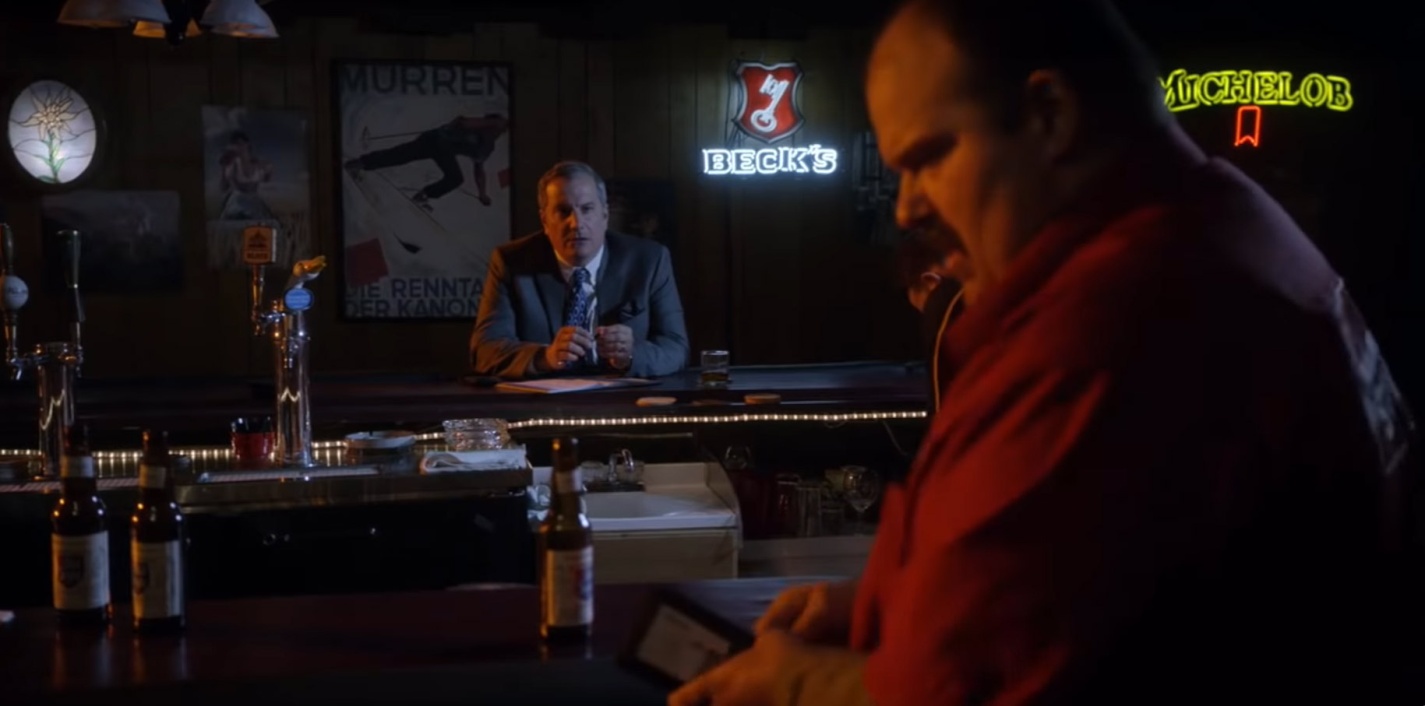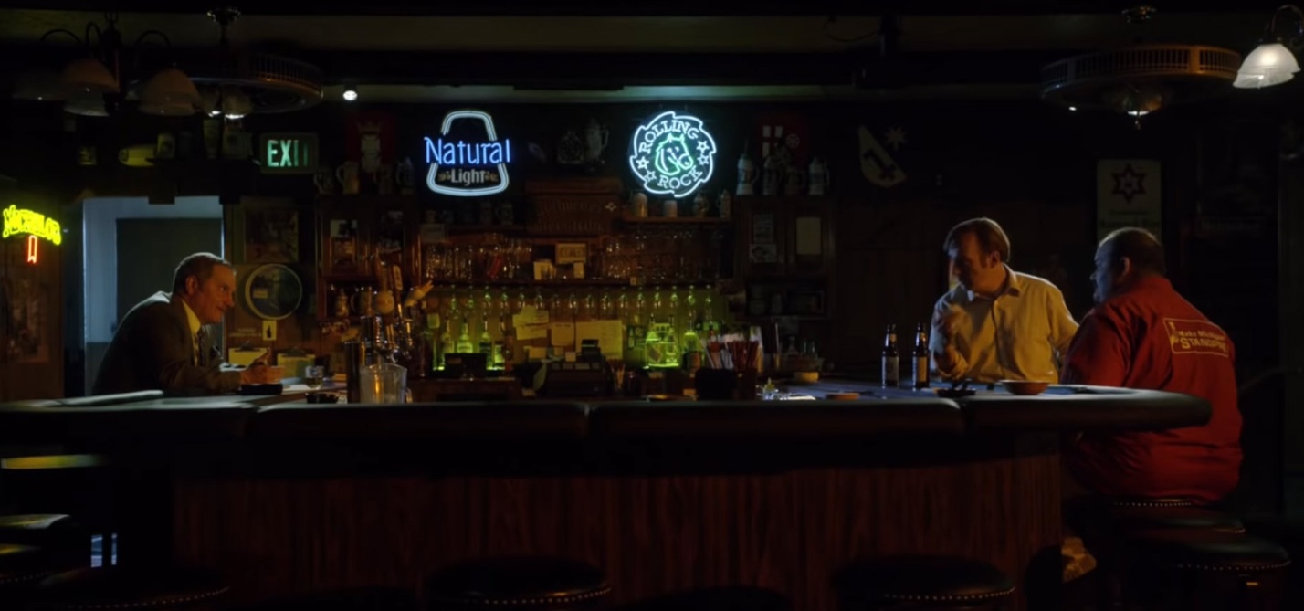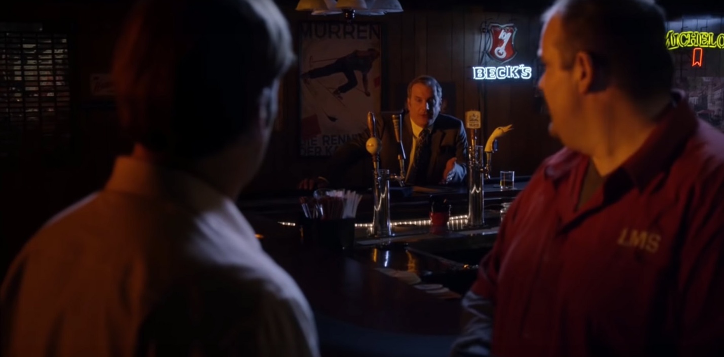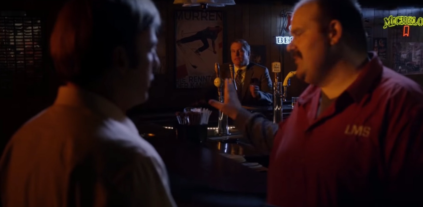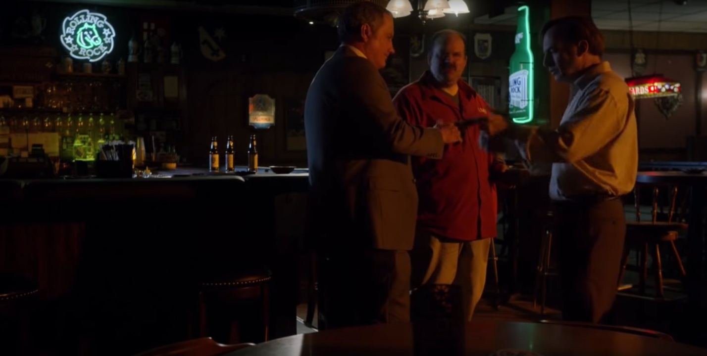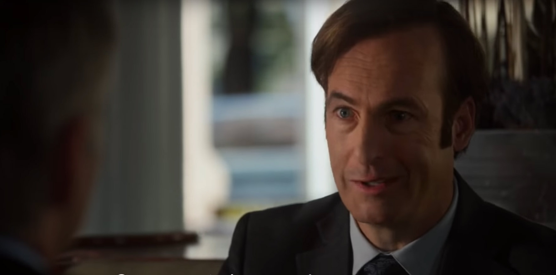 Чуть позже в серии Джимми встречается с потенциальным инвестором. Ситуация выстроена так, чтобы жертва сама задавала вопросы.