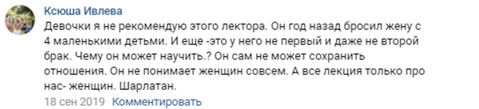 Да-да, цитата из лекции Руслана Нарушевича: «Женщина по природе своей…я всегда говорю — посмотрите утром, входя в душ, посмотрите на свое тело, и вы увидите на нем, простите, органы, которые предназначены потенциально для отдавания. То есть женщина создана для отдавания, это написано на ее теле, большими буквами. Ты родилась отдавать, ты родилась служить».