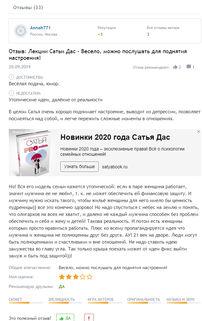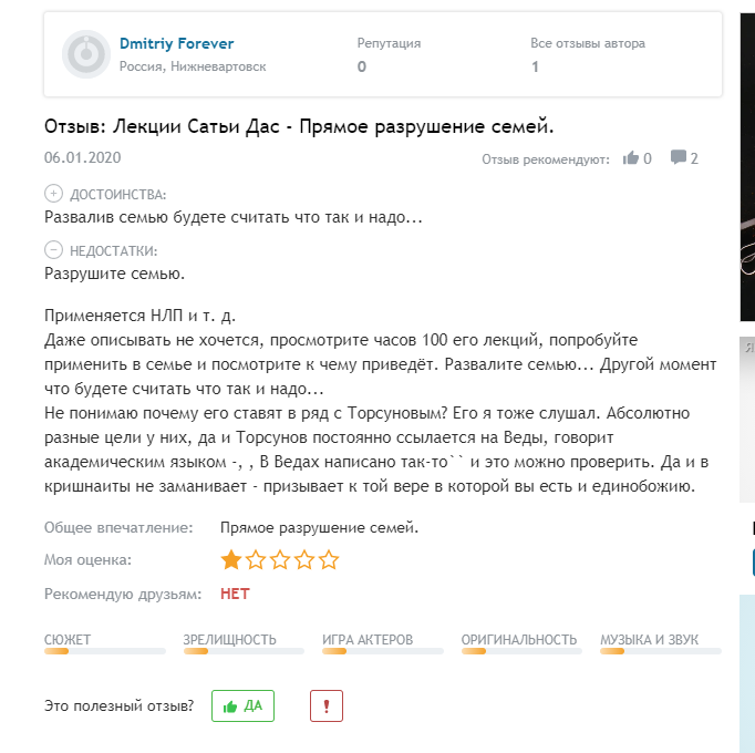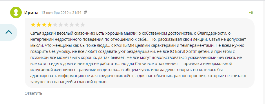 А вот отзыв молодого человека, чья девушка совершенно внезапно решила поменять концепцию отношений, наслушавшись лекций Сатьи Даса (орфография и пунктуация автора сохранены).