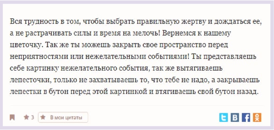 Это лишь часть интересов «нежной женщины, отдающей ответственность мужчине» (какой ее представляют поклонницы) Ларисы Ренар. Она любит повторять фразу психолога Мэрилин Аткинсон: «Посланник — не всегда есть послание». Учитель не всегда хорош в том, чему он учит, — важнее его умение передавать знание. Нынешняя политическая и общественная деятельность призвана расширить горизонт влияния фам фаталь Ларисы Ренар до максимума. А для ее читательниц рекомендация прежняя: носите юбочки, включайте «девочку», дышите «маточкой», и дай вам Бог мужчину с числом 17.