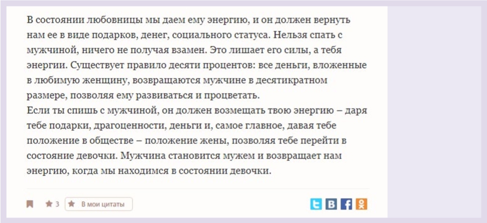 Только неискушенные умы могут воспринимать «гур женственности» как опытных старших подруг, роковых соблазнительниц, мудрых наставниц, открывших тайну древних знаний.