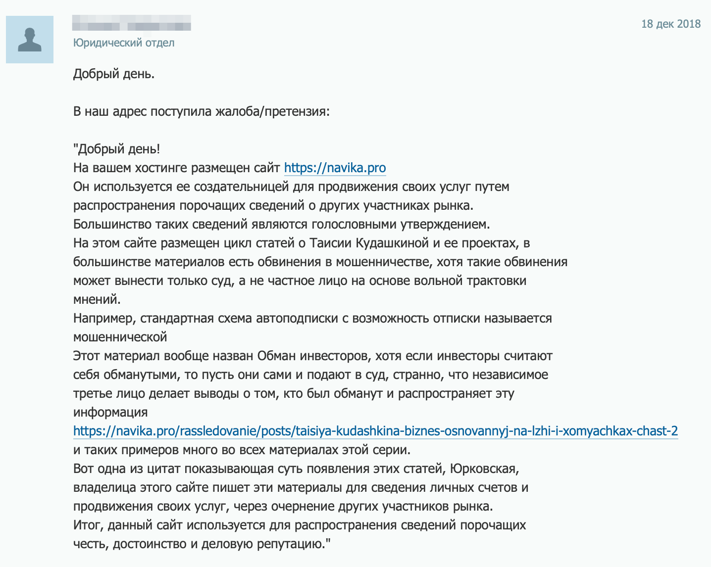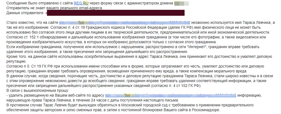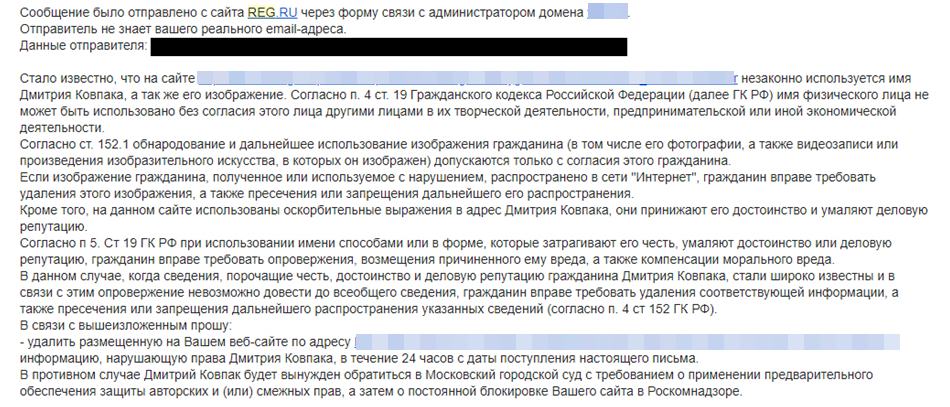 Помните: никакие претензии от частных лиц и хостинг-провайдеров не имеют юридической силы.