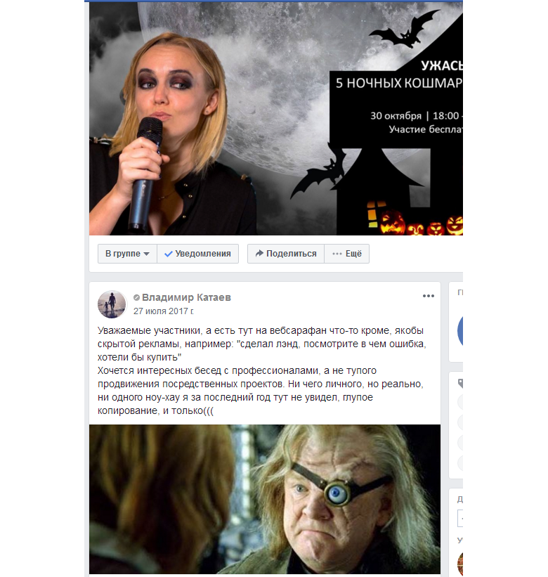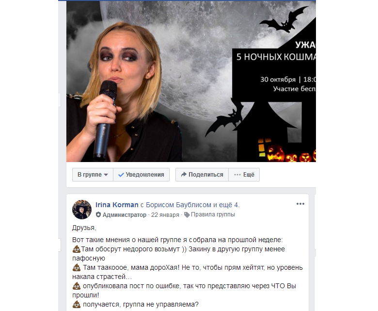Также администраторы активно пиарили свои онлайн-мероприятия. Ну ок, подумала я, возможно, в этом и есть суть группы, собрать пищевой бульон для мероприятий, на которые придут люди и заплатят за знания. И я зарегистрировалась на мероприятие.