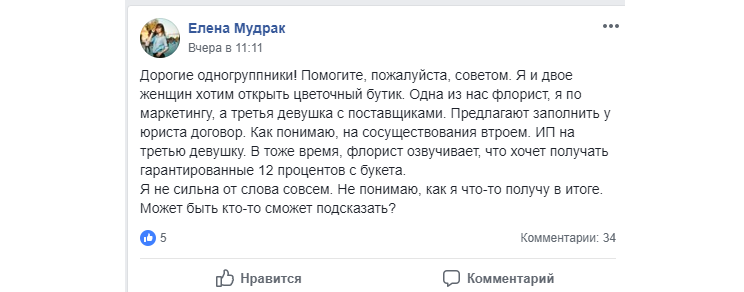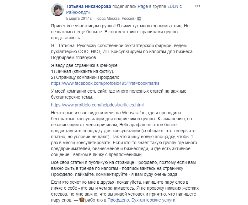 Татьяна Никанорова регулярно «дежурила» и бесплатно давала сотни советов по налогообложению и бухучету. Казалось бы, скажи спасибо за волонтерскую работу, но нет. Организаторы захотели денег, потребовали их от Татьяны, но в итоге неожиданно даже не смогли определиться, какую сумму и каким образом планируют получить от своих спикеров.