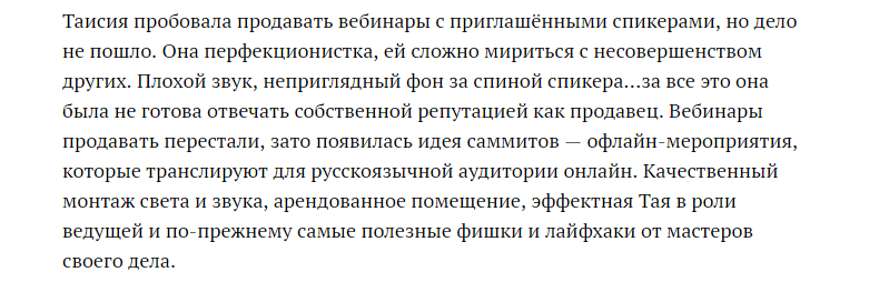 Ответ на этот невероятный вопрос — в следующей серии, посвященной закрытым платным клубам, курсам Таисии и ее саммитам.