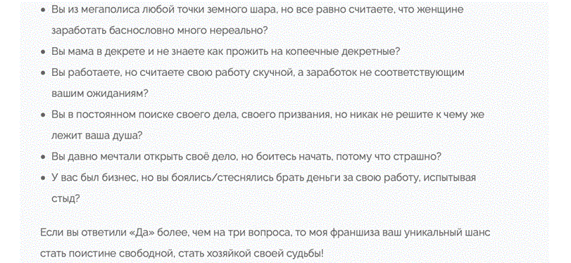 Франшиза «Женщина высшего пилотажа» очень напоминает МЛМ-бизнес: «Набираю в свою команду мамочек в декрете от 18 до 60 лет, высокий заработок при занятости 2–3 часа в день».