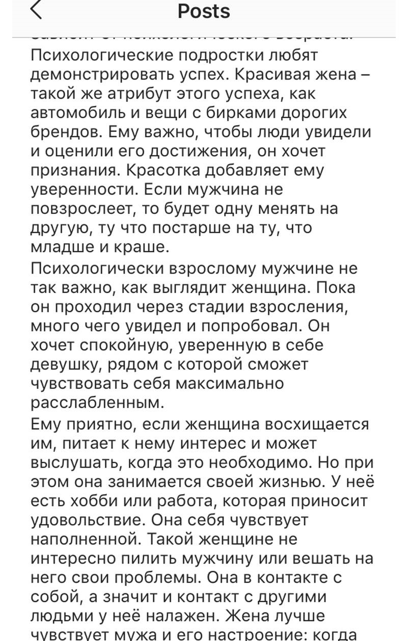 В начале августа в «Инстаграме» Вероники появляются две весьма мудрые и полезные статьи: «Каких женщин предпочитают успешные мужчины» и «Обязаны ли вы любить родителей?».