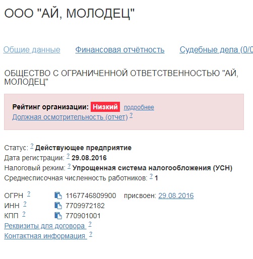 Фирма «Ай, молодец» тоже не отличается высоким рейтингом.