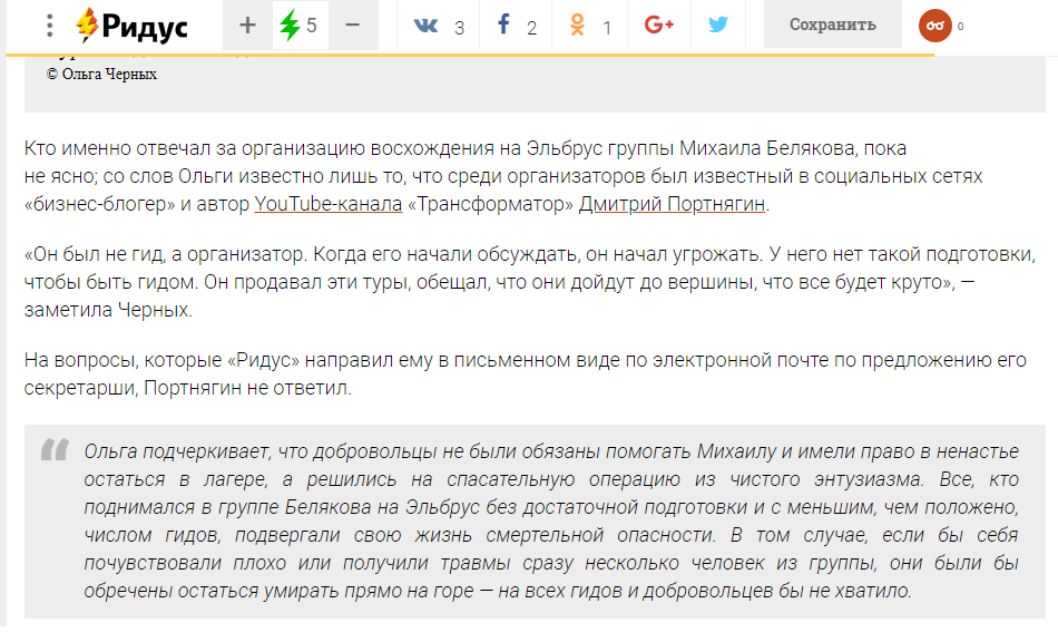 Еще один скандал, связанный с именем Дмитрия Портнягина, произошел во время восхождения клуба «Трансформатор» на Эльбрус.