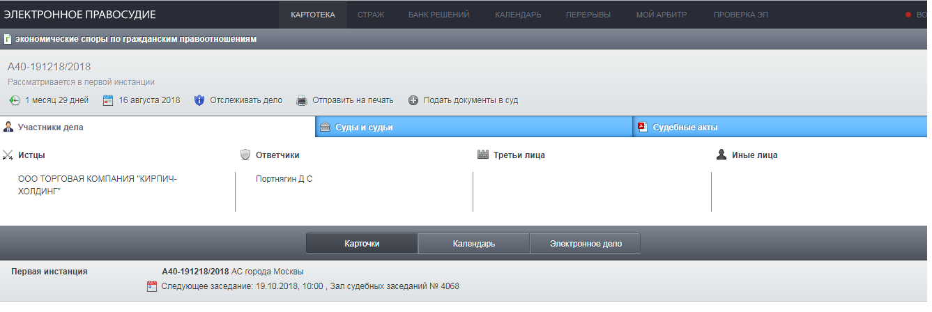 И снова стоит обратить внимание, что истцом выступает ООО «Кирпич-Холдинг», а вот ответчиком — частное лицо Дмитрий Сергеевич Портнягин, не обозначенный ни как ИП, ни как ООО, ни как мифический клуб «Трансформатор», концов которого так и не удалось найти в реестре предпринимателей России.
