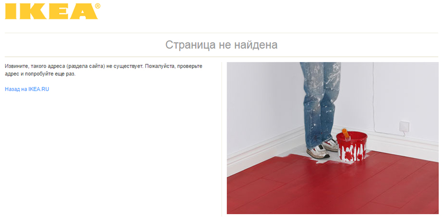- Оформите ее в едином стиле с сайтом. Постарайтесь разрядить обстановку, поставьте юмористическую картинку: пользователь не виноват, что здесь оказался.