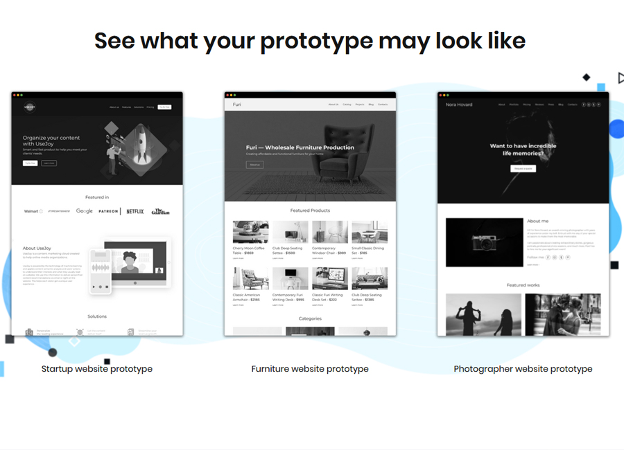 Если вы новичок и разработка прототипов — не ваше основное занятие, вполне можно обойтись простыми конструкторами. В их арсенале есть наборы готовых шаблонов или сверстанных блоков, которые можно редактировать и миксовать под потребности вашего прототипа. Этого вполне хватает, чтобы создать полноценный черновик и донести дизайнеру ваш замысел.