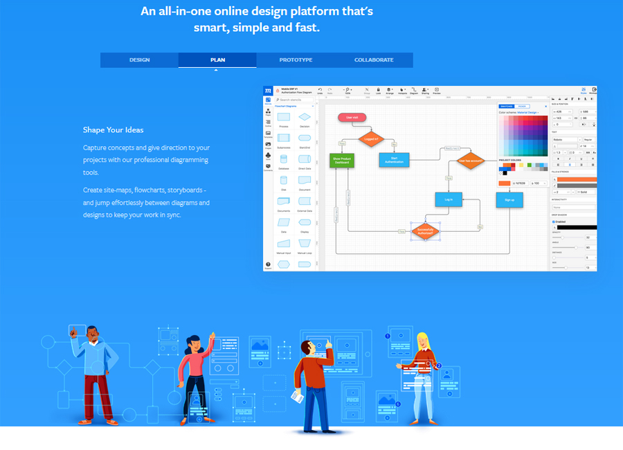 Этот редактор охотно используют даже профессиональные проектировщики. Профессиональная версия стоит 19 долларов в месяц, но для новичков есть возможность создать один прототип бесплатно.