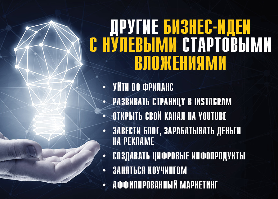 Другие бизнес-идеи с нулевыми стартовыми вложениями:
